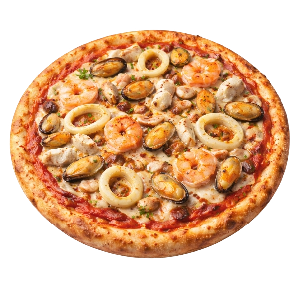 SAUCE TOMATE, JAMBON, FROMAGE POIVRONS, CHAMPIGNONS, ARTICHAUTS
